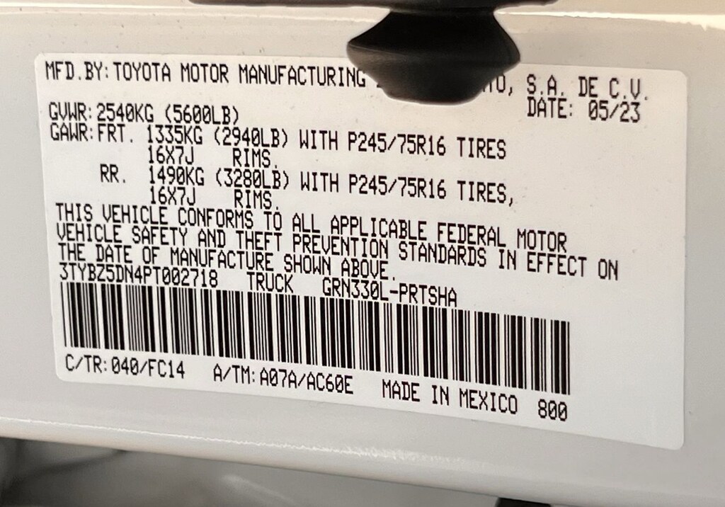 - Rear tires: 265/65SR17.0